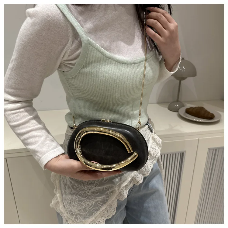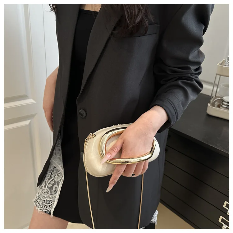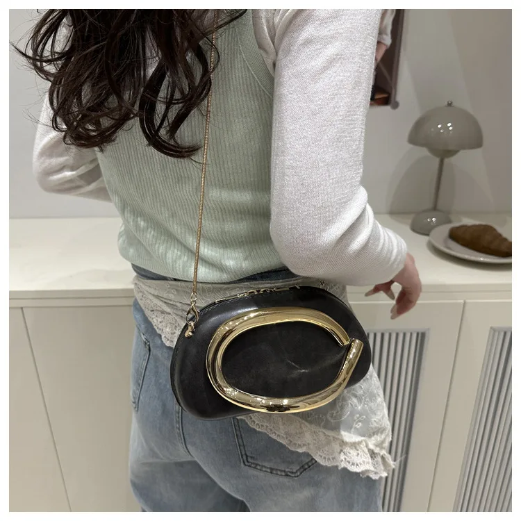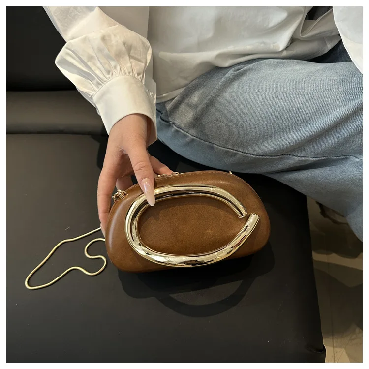 Z Style Clutch Bag New Evening Bag Special-shaped Metal Chain Details Decorative Box-style Small Square Bag Luxury Shoulder Bag